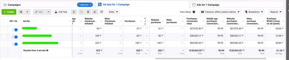 Budget: $262,983.99Results: 5.56x ROAS in 30 daysHow: Focused scaling on cold audiences. Instead of small 20% budget bumps, I increased spend by 2–5x on proven creatives with strong metrics